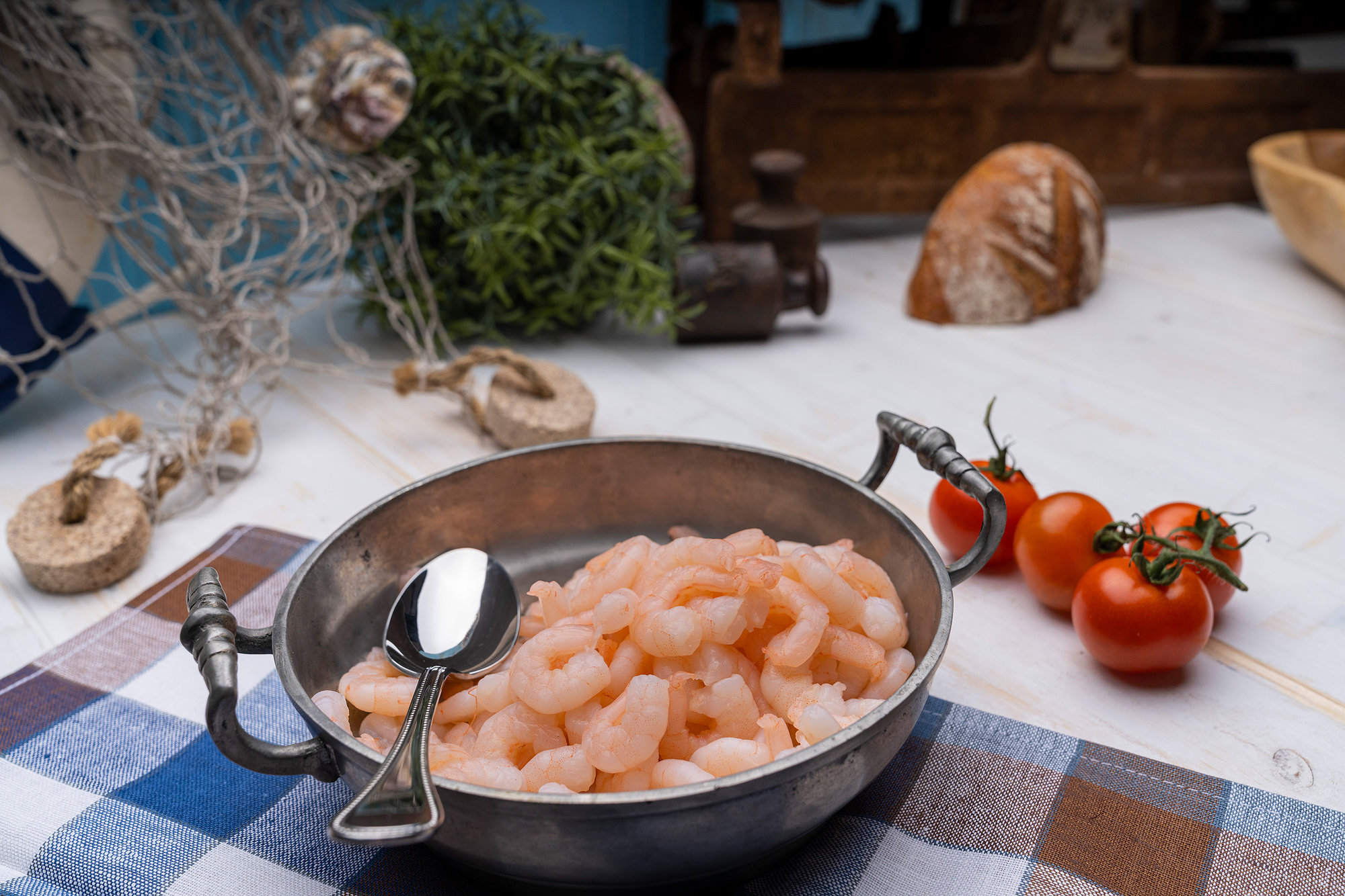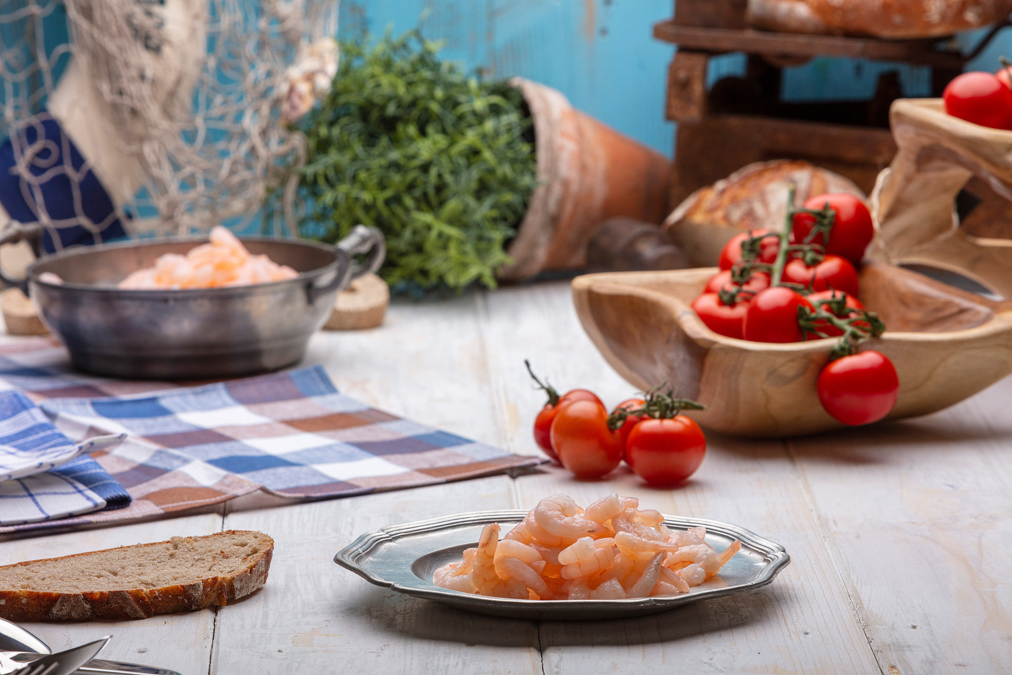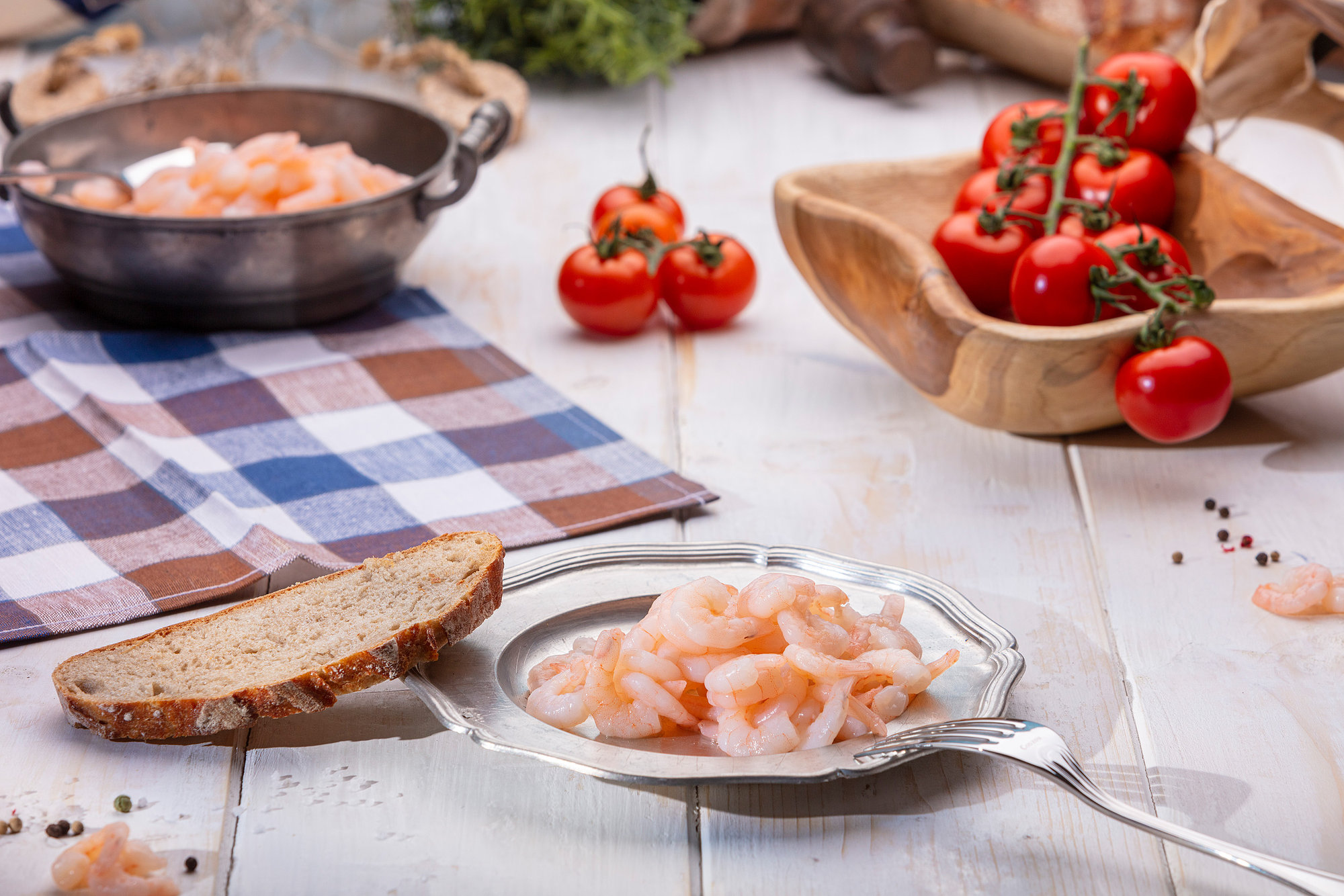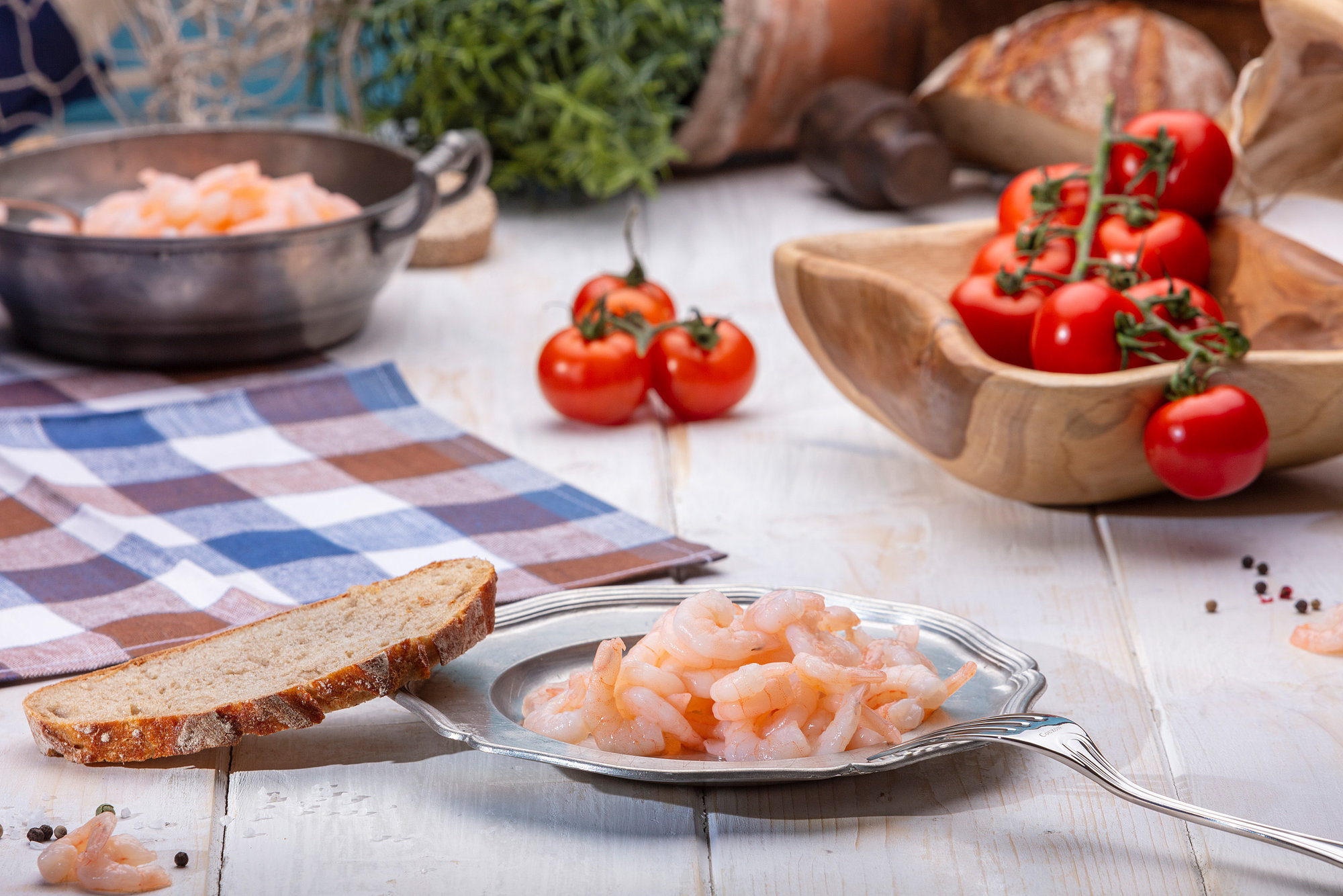 Richten Sie das Garnelenfleisch Natur auf einem Teller mit frischer Avocado, roten Zwiebeln, geviertelten Kirschtomaten und einer Vinaigrette aus Zitrone, Olivenöl und Petersilie an. Etwas frisch gemahlener Pfeffer, dazu ein knuspriges Baguette – und Sie zaubern in wenigen Minuten eine frische, proteinreiche und leicht bekömmliche Mahlzeit mit mediterranem Flair.